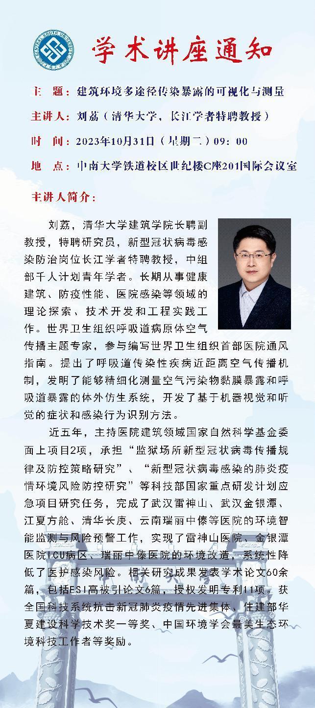 《建筑环境多途径传染暴露的可视化与测量》学术讲座通知