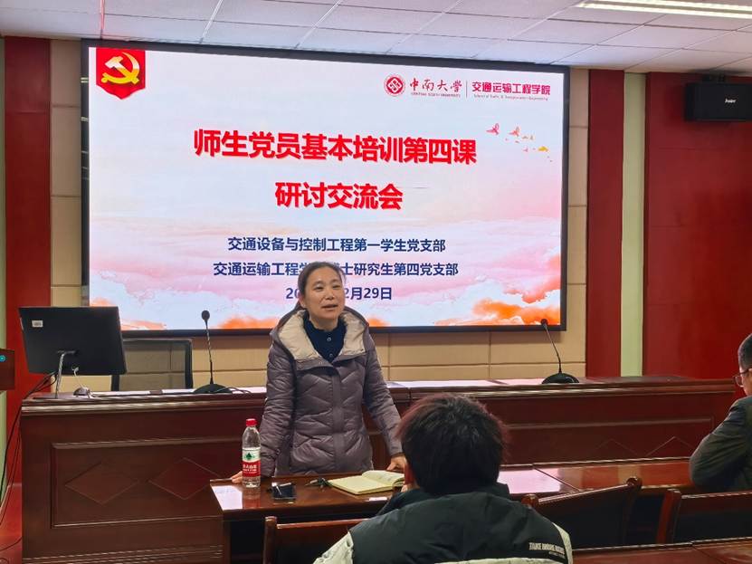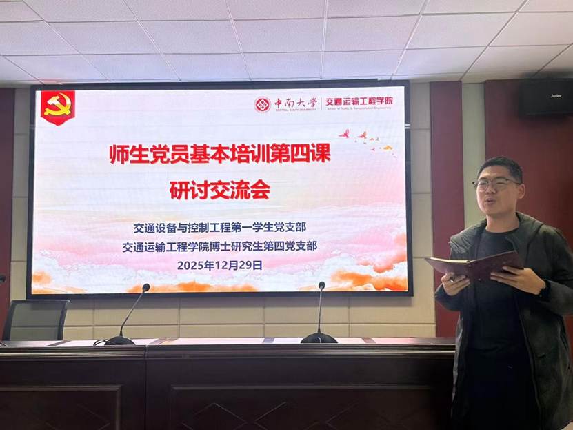 随后,交通设备与控制工程第一学生党支部书记郑繁简结合支部育人工作分享感悟。他指出,薛其坤院士对教师党员的要求为基层思政教育提供遵循,后续支部将深化党员教育,推动党课精神融入育人全过程,引导学生党员成长成才。
