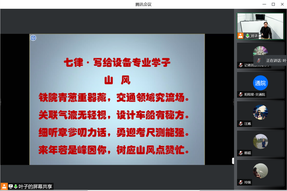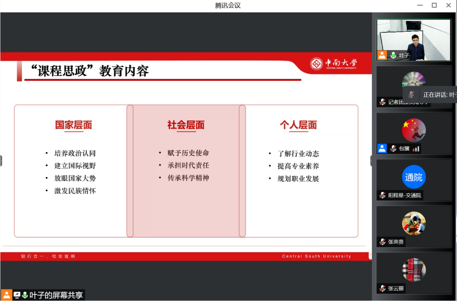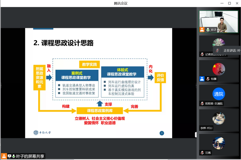 思政中心举行了一场线上线下别开生面的课程思政教学竞赛。学校教学督导、马克思主义学院谭希培教授、学院党委书记贺志军教授、学院副院长刘辉教授、工会主席校督导罗意平教授、党委委员叶峻青副教授、院督导组组长毛成辉副教授出席本次会议并担任评委。会议由学院副院长陈维亚主持,评委们在交通楼304,线下参赛选手在交通楼203录播室进行比赛,还有两位老师由于疫情防控需要线上参赛。其余教师通过腾讯会议观看此次比赛。