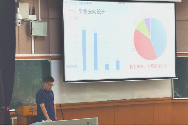 随后,郑繁简老师从毕业去向统计、就业信息获取渠道、就业日历提示、就业准备、就业工作程序、就业常识以及注意事项几个方面入手,展开了就业指导。通过深入剖析往届交院学子的就业数据,他指出了对应专业的毕业去向及未来趋势,并在此基础上,进一步普及了就业协议书、网上签约系统等必备常识,为同学们的就业选择指明方向。此外,他还提醒同学们不要被网络信息蒙蔽双眼,须全面了解用人单位情况,充分保护个人信息,谨防电信诈骗和求职陷阱。
