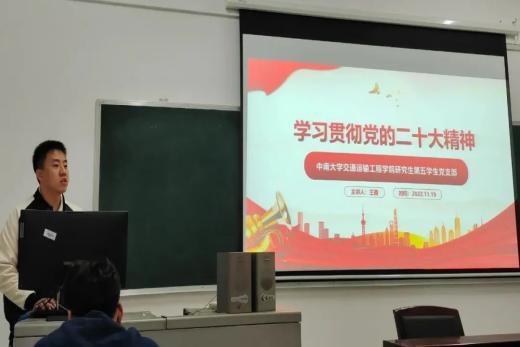 研究生第五党支部于交通楼515开展学习贯彻党的二十大精神专题党课。本次党课由党支部书记王鑫同志主讲,支部全体党员同志参加学习。