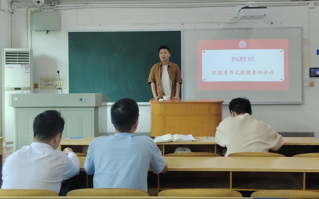 最后,张健老师发表讲话。张老师用“为者常成”总结了过去一年学院团委工作。张老师表示,过去一年,学院团委在院党委的坚强领导和校团委的指导下,在各学生干部的共同努力和学院学生的积极配合下,取得了丰硕成果和亮眼成绩。经过忙碌而又充实的一学年,同学们锻炼了自己的能力,综合素质不断提高。张老师希望同学们可以在接下来的学习生活中继续保持锐意进取的姿态,做好各部门的工作交接,为学院培养下一届团学工作接班人。