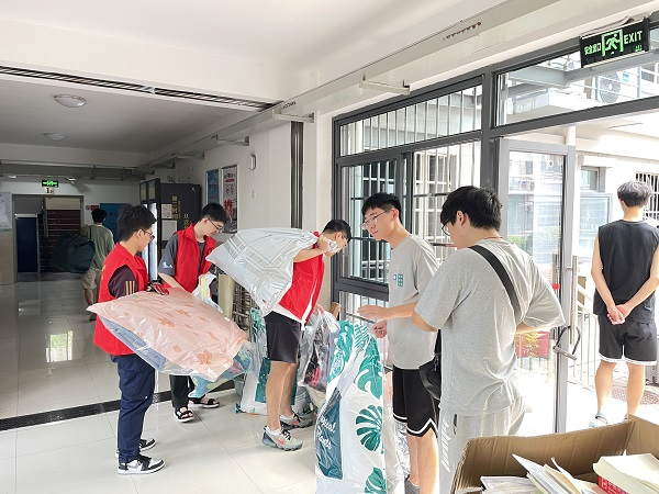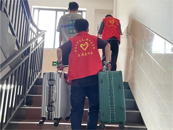 虽然恰逢长沙高温天气,但老师和同学们没有停下忙碌的身影。搬迁过程中,学院全体辅导员参与疏导和协调,确保搬迁工作安全、有序完成。在炎炎烈日下,同学们团结一心、互帮互助,学院志愿者和工作人员各司其职、认真负责,维持搬迁秩序,确保搬运车辆及时到位,学生行李物品及时归寝。