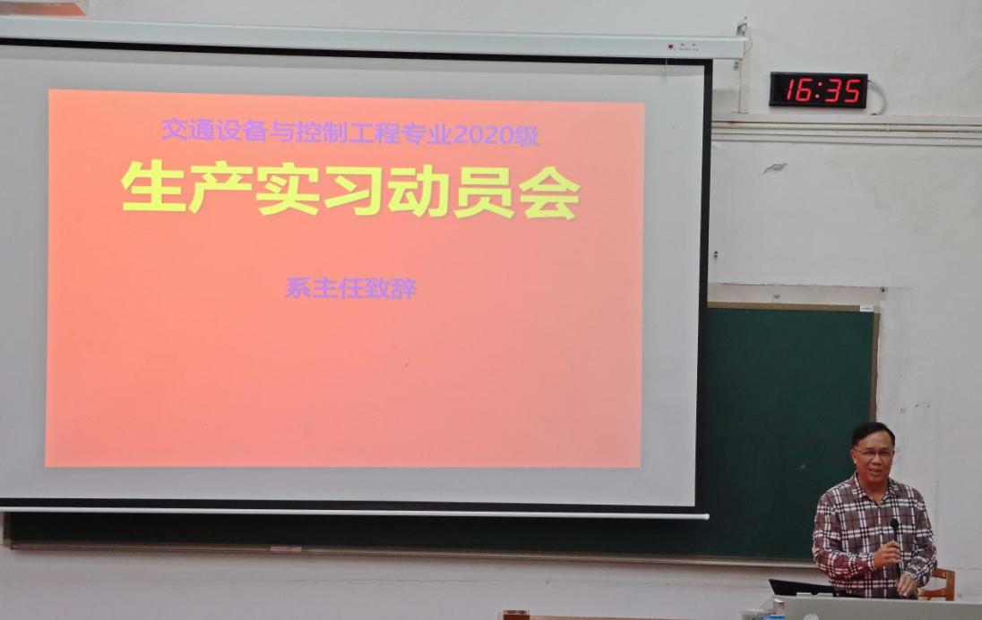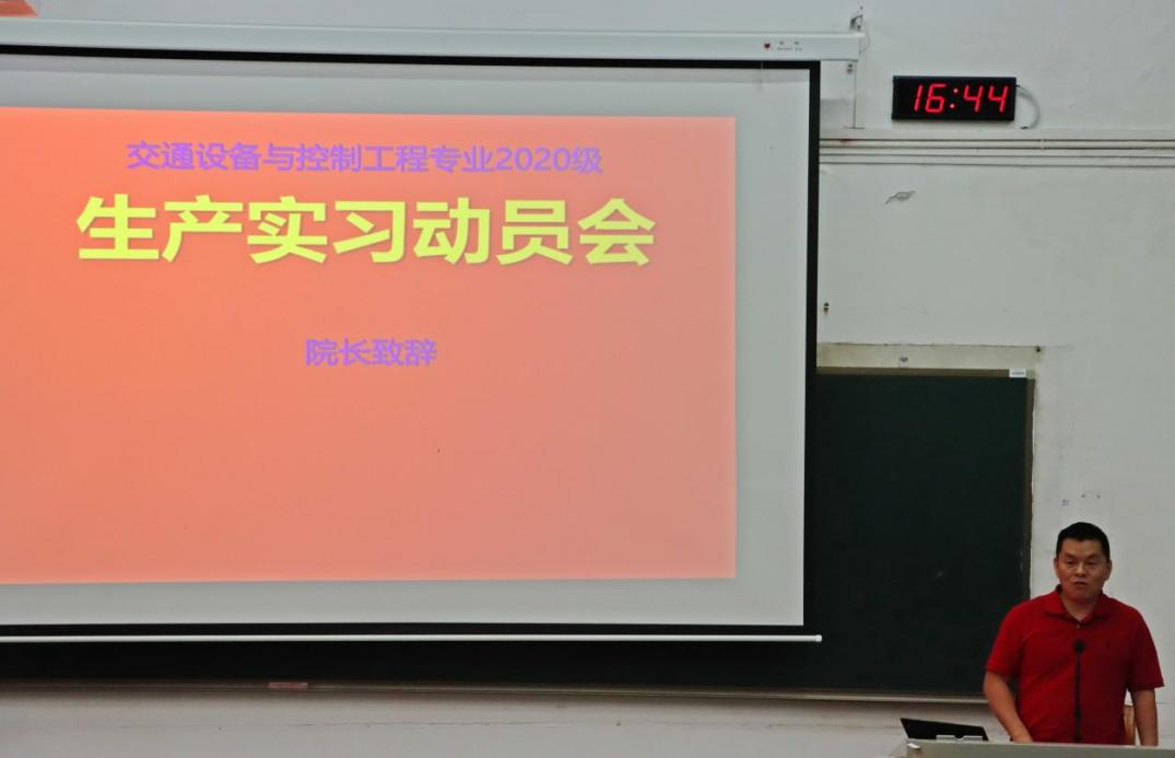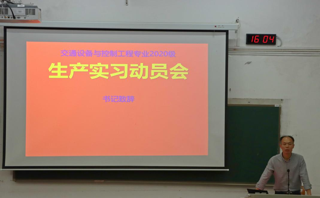 11月1日下午16:00,交通设备与控制工程专业2020级生产实习动员会于铁道校区攀登楼103举行。交通院党委副书记李苑,副院长陈维亚,交通设备与控制工程系主任章易程,实习队长谢劲松及全队指导老师,2020级辅导员石晓琪,以及2020级交通设备与控制工程专业全体同学参加会议。本次会议由谢劲松老师主持。