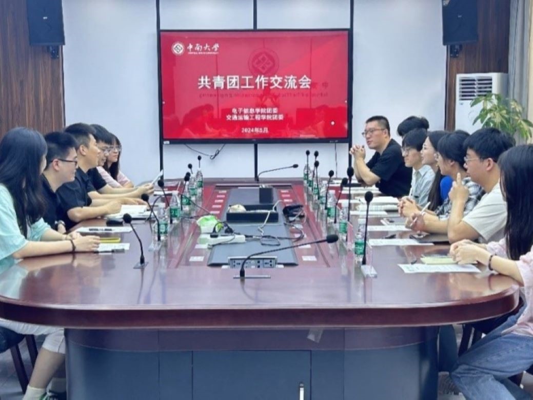 于交通楼119举行共青团工作交流会,电子信息学院团委书记欧阳旖旎、交通院团委书记张健、团委副书记郑繁简、两院团委主要学生干部参会。本次会议由张健老师主持。