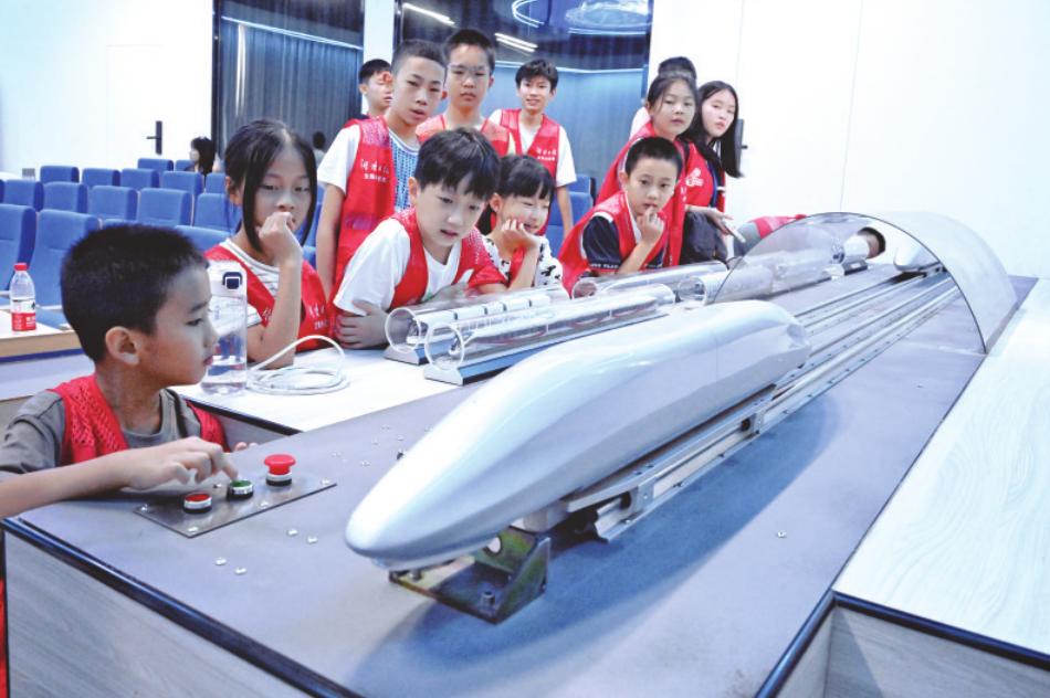 湖南湘江新区麓谷赫英小学肖辰希:在羞羞漫画 轨道交通科普基地,我不仅了解了列车发展历程,观看了列车模型穿越隧道、交会和模拟碰撞的过程,还听到了科学家们开展铁路自主创新工作背后的艰难探索历程。正是我们广大的铁路工作人员自立自强,不断探索试验,一代又一代人攻坚克难接续,才跑出了世界领先的飞驰速度。你看,车车的学问,“慢”也能成就“快”。