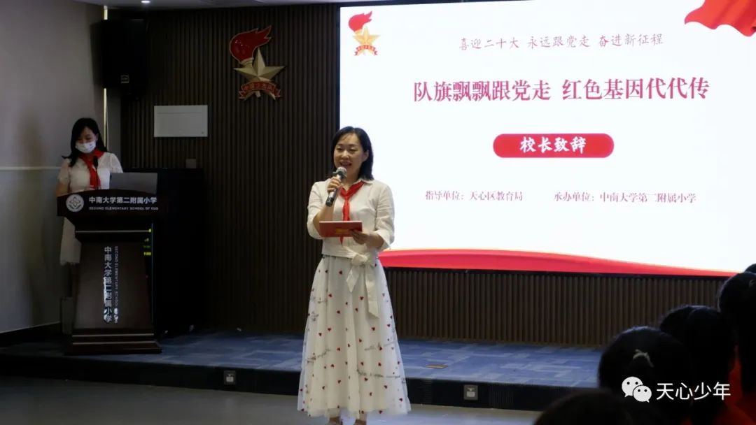 习近平总书记曾深刻地指出:“少年强则国强。当代中国少年儿童既是实现第一个百年奋斗目标的经历者、见证者,更是实现第二个百年奋斗目标、建设社会主义现代化强国的生力军。”队旗飘飘跟党走,天心区辅导员团队将牢记党与国家赋予的使命,努力谱写立德树人新篇章。让红色成为少先队员们的精神底色,让红色基因代代传承,引领塑造一批批有理想、有本领、有担当的时代新人成为共产主义事业的接班人!