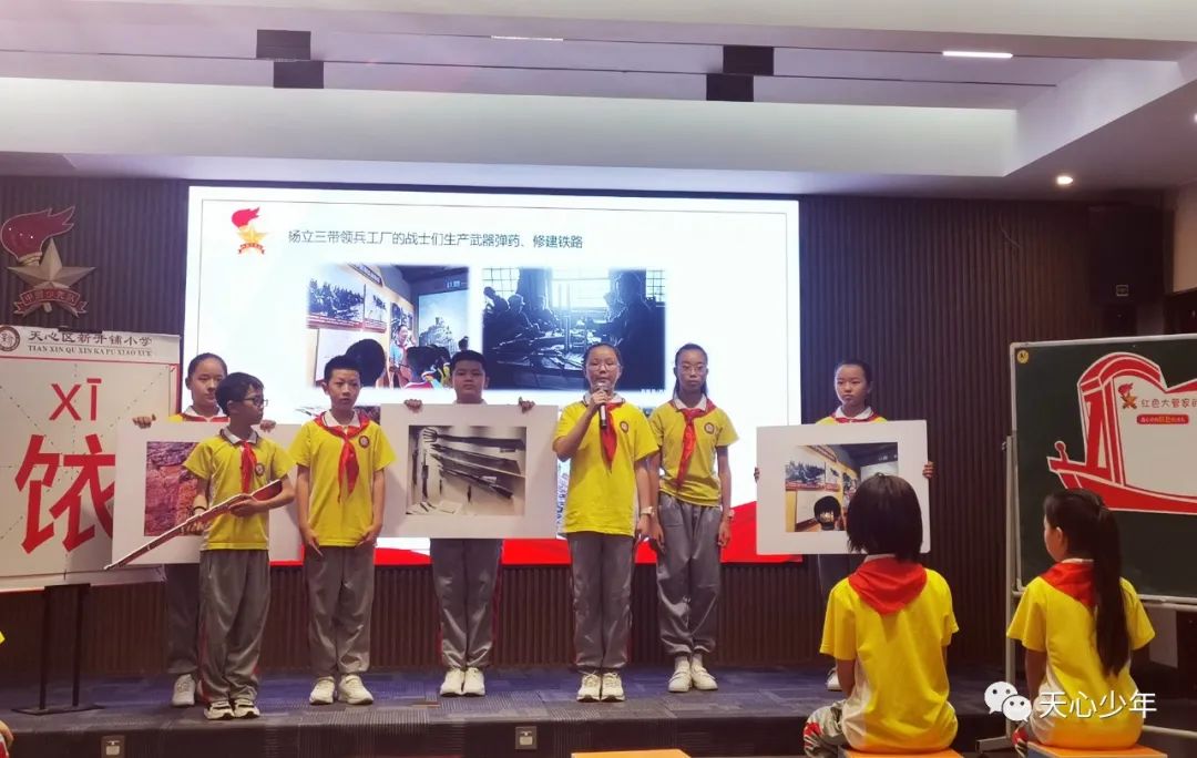 新开铺小学大队辅导员杨艳老师带来的队课展示《红色大管家的创“饻”之心》,创造性地从一个特殊的汉字“饻”来追寻一段艰苦奋斗的革命历史。队员们从字里读到了为人民服务的共产党人精神,并将为人民服务的精神付诸于实践,在实践中帮助队员学好党史,赓续红色血脉。